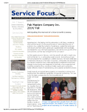 Fall issue of Fab Masters Co. Service Focus. The company is expanding its large parts capabilities, facility reorganization and new large part manufacturing equipment purchases.